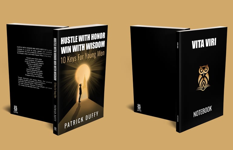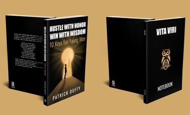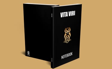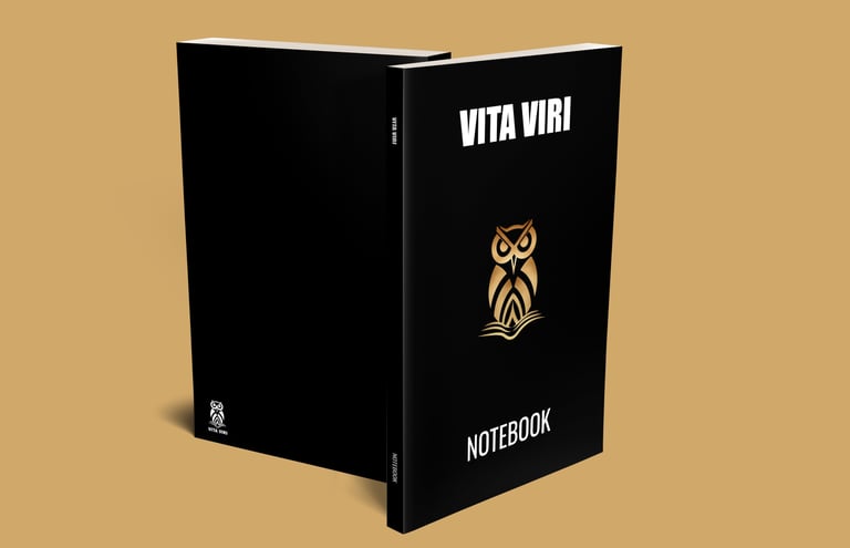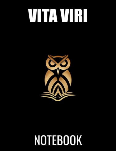 VITA VIRI (A Man’s Life) Notebook is a styled personalized journal with curated quotes from its companion book HUSTLE WITH HONOR WIN WITH WISDOM, and the WISDOM WHEEL.